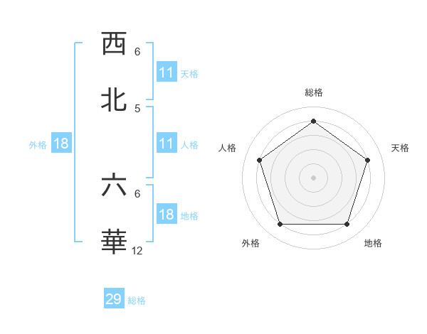 西北 六華さんの総格は29画の4点!