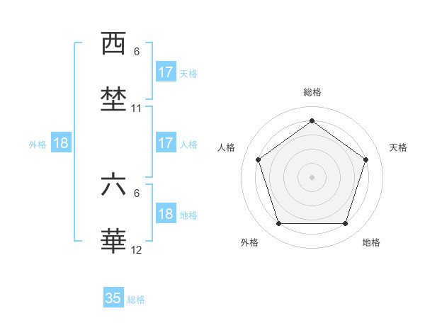 西埜 六華さんの総格は35画の4点!