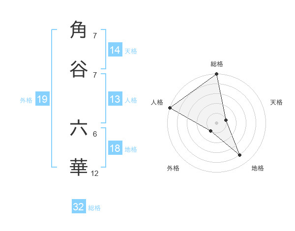 角谷 六華さんの総格は32画の5点!