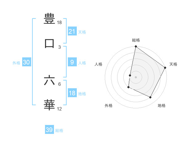豊口 六華さんの天格は21画の5点!