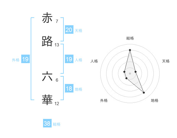 赤路 六華さんの総格は38画の4点!