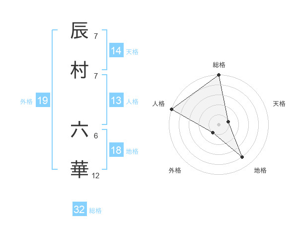 辰村 六華さんの総格は32画の5点!
