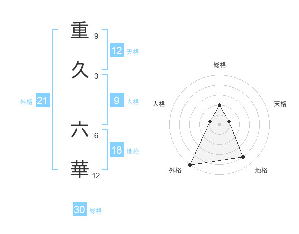 重久 六華さんの総格は30画の2点!