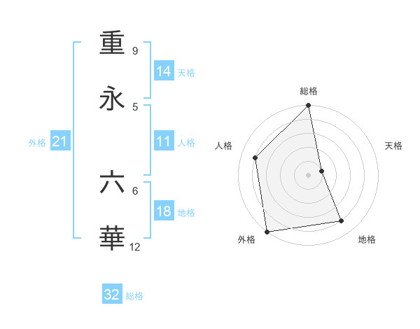 重永 六華さんの外格は21画の5点!