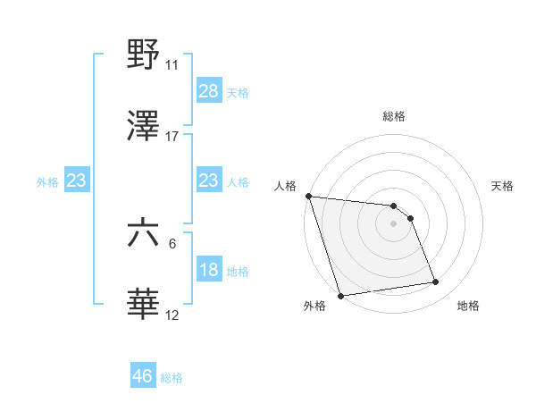 野澤 六華さんの人格は23画の5点!