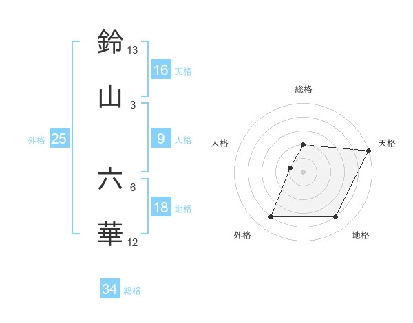 鈴山 六華さんを姓名の画数から五運を鑑定