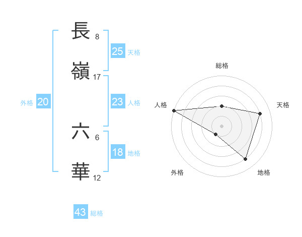 長嶺 六華さんを姓名の画数から五運を鑑定