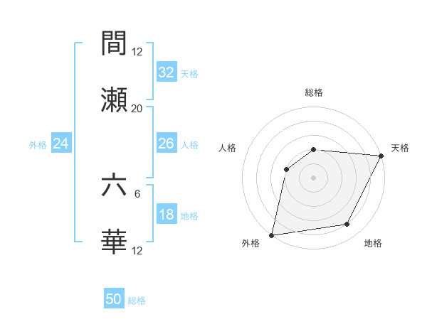間瀬 六華さんの天格は32画の5点!