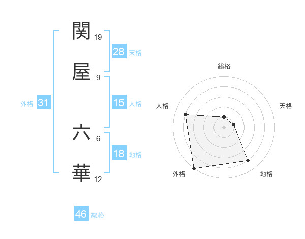 関屋 六華さんの外格は31画の5点!