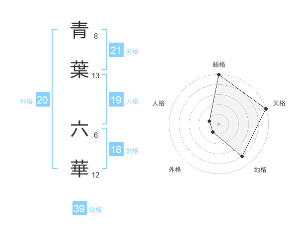 青葉 六華さんの外格は20画の1点!