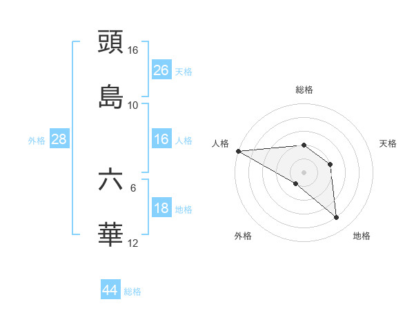 頭島 六華さんの総格は44画の2点!
