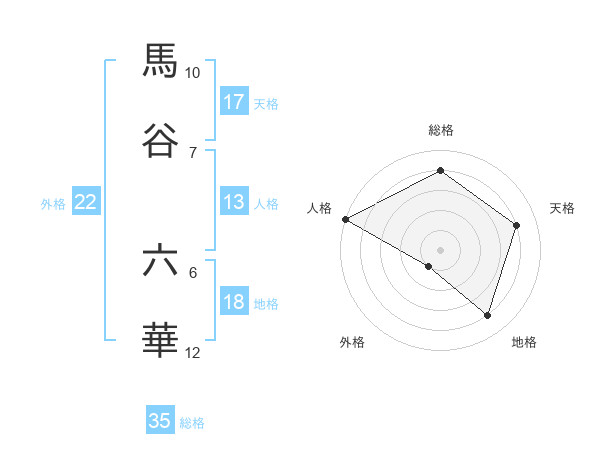 馬谷 六華さんの天格は17画の4点!