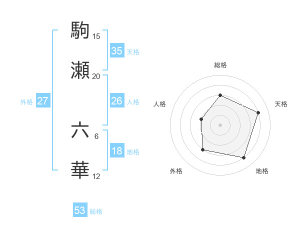 駒瀬 六華さんを姓名の画数から五運を鑑定