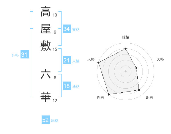 高屋敷 六華さんを姓名の画数から五運を鑑定