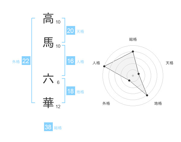 高馬 六華さんの総格は38画の4点!