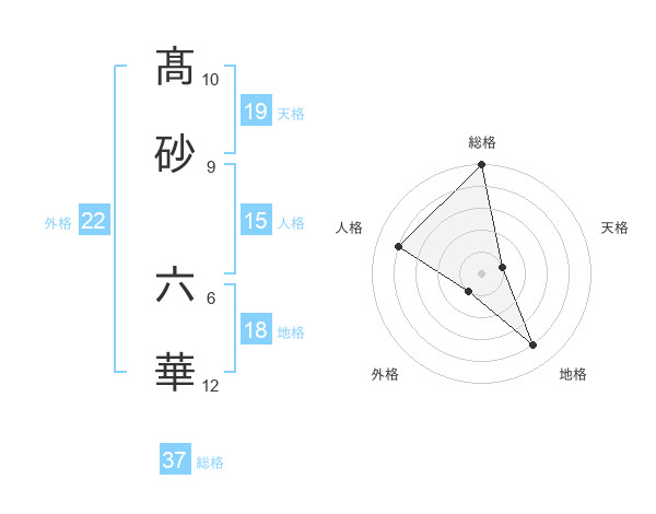 髙砂 六華さんの総格は37画の5点!