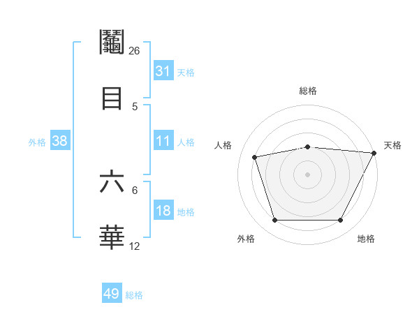 鬮目 六華さんの外格は38画の4点!