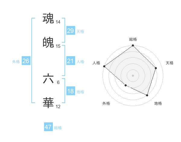 魂魄 六華さんの総格は47画の5点