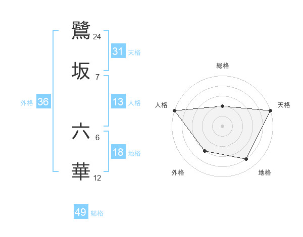 鷺坂 六華さんを姓名の画数から五運を鑑定