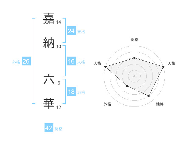嘉納 六華さんを姓名の画数から五運を鑑定