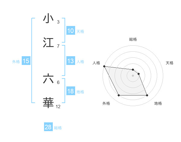 小江 六華さんの総格は28画の1点!