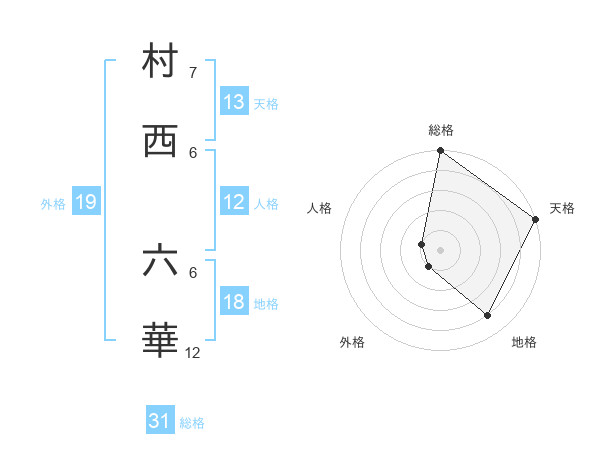 村西 六華さんの天格は13画の5点!