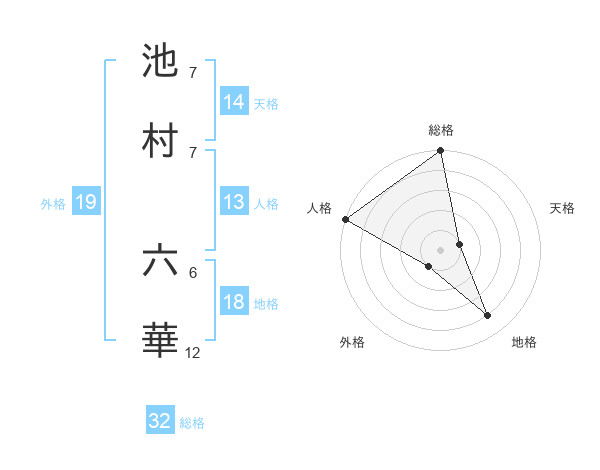 池村 六華さんの総格は32画の5点!