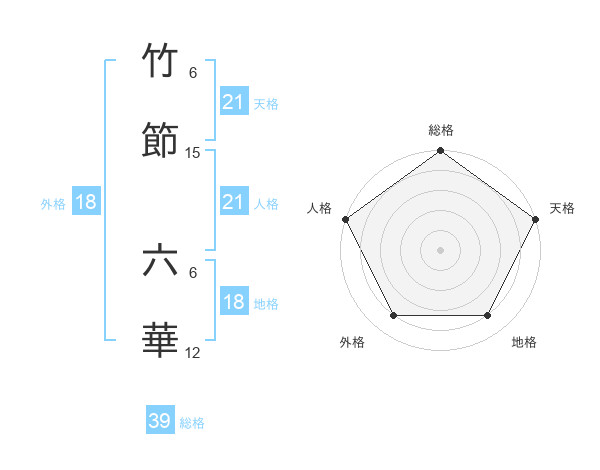 竹節 六華さんの総格は39画の5点!