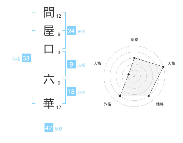 間屋口 六華さんの天格は24画の5点!