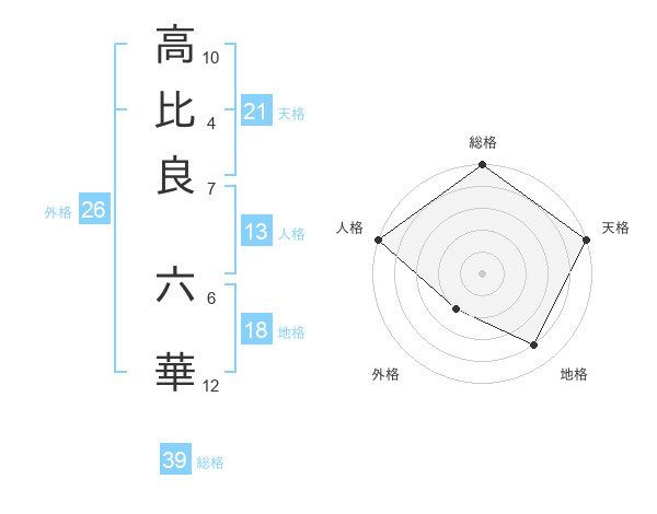 高比良 六華さんの天格は21画の5点!