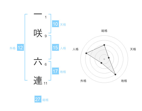 一咲 六連さんを姓名の画数から五運を鑑定