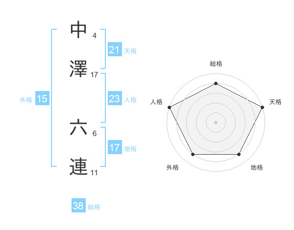 中澤 六連さんの総格は38画の4点!