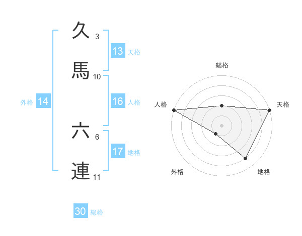久馬 六連さんの地格は17画の4点!