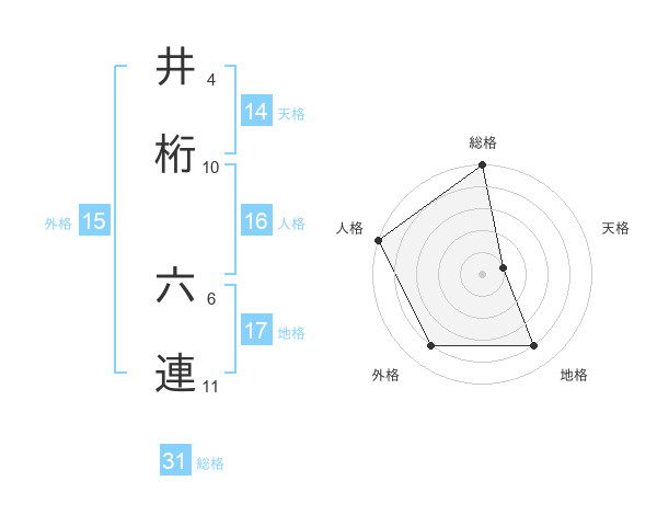 井桁 六連さんの外格は15画の4点!