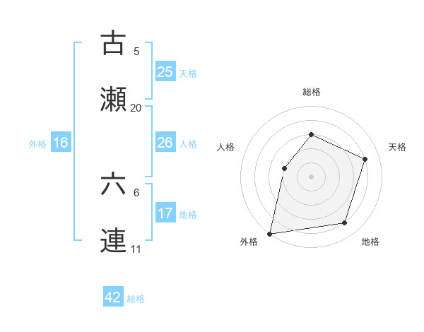 古瀬 六連さんを姓名の画数から五運を鑑定