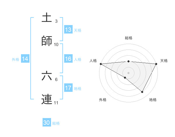 土師 六連さんの総格は30画の2点!