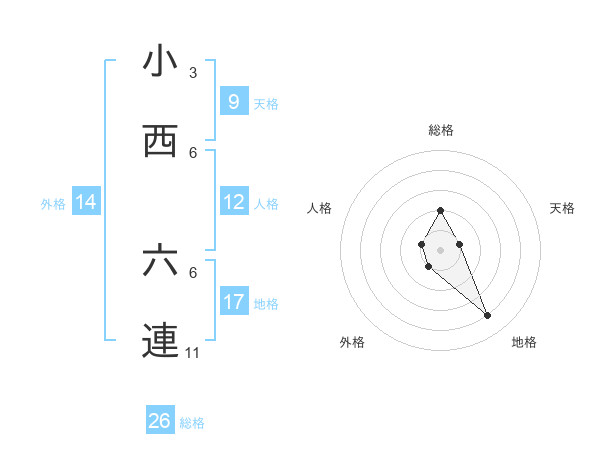 小西 六連さんの地格は17画の4点!