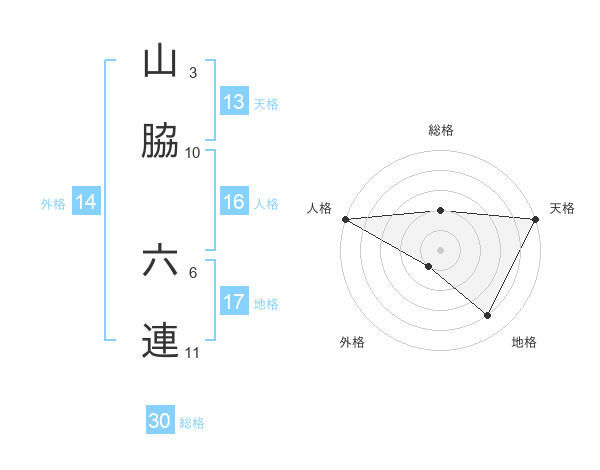 山脇 六連さんの天格は13画の5点!