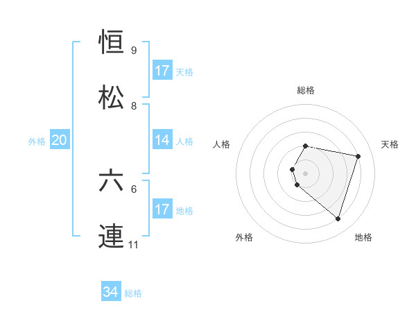 恒松 六連さんの天格は17画の4点!