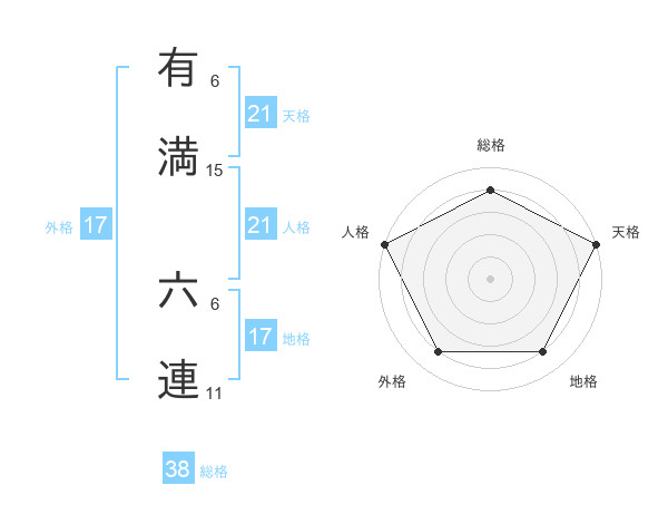 有満 六連さんの天格は21画の5点!
