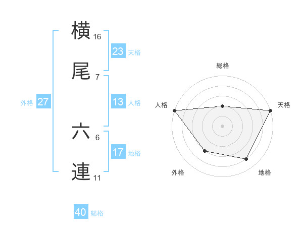 横尾 六連さんの天格は23画の5点!