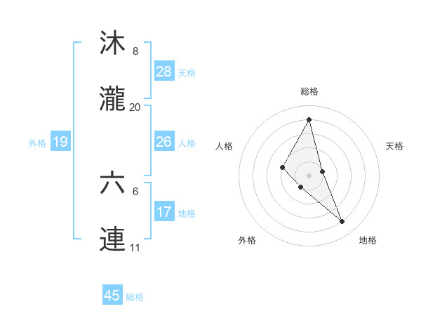 沐瀧 六連さんを姓名の画数から五運を鑑定