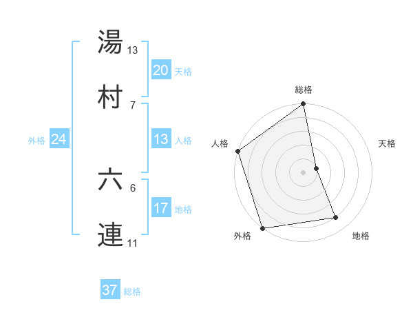 湯村 六連さんの総格は37画の5点!