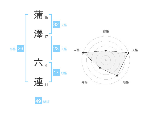 蒲澤 六連さんを姓名の画数から五運を鑑定