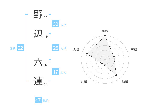 野辺 六連さんの総格は47画の5点!