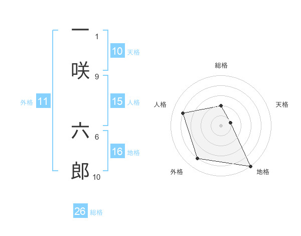 一咲 六郎さんの総格は26画の2点!