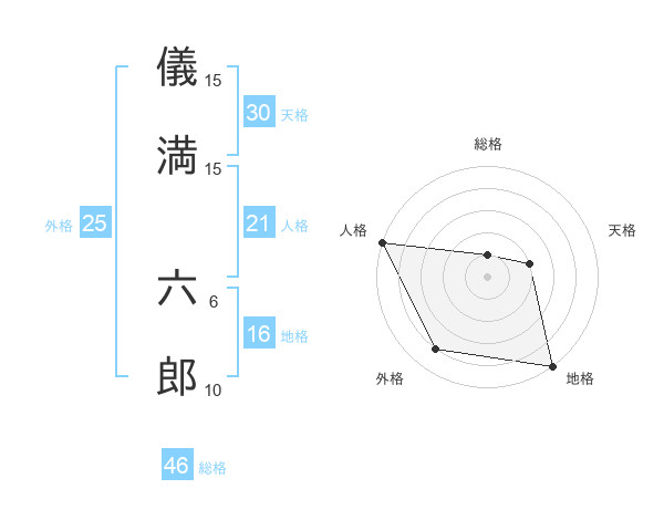 儀満 六郎さんの天格は30画の2点!