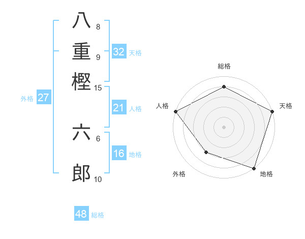 八重樫 六郎さんを姓名の画数から五運を鑑定