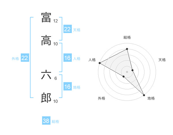 富高 六郎さんの総格は38画の4点!