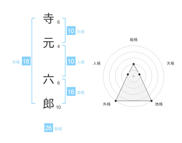 寺元 六郎さんを姓名の画数から五運を鑑定